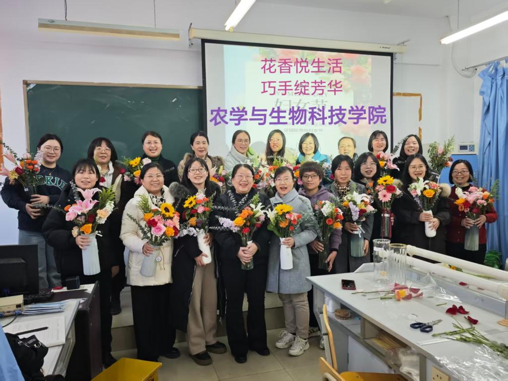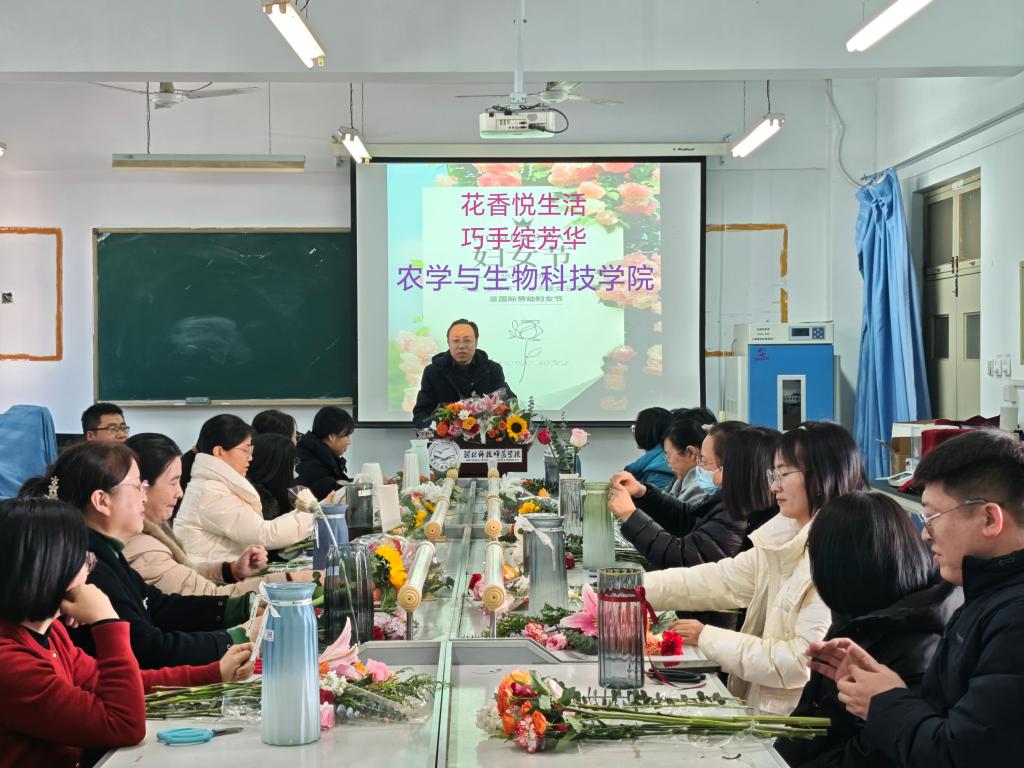 为庆祝“三八”国际劳动妇女节,丰富女教职工精神文化生活,弘扬新时代女性风采,3月6日下午,公司分工会在农学实验室举办了“花香悦生活 巧手绽芳华”为主题的艺术插花活动。公司领导班子成员、工会委员及30余名女教职工齐聚一堂,在花香与创意中度过温馨节日。
