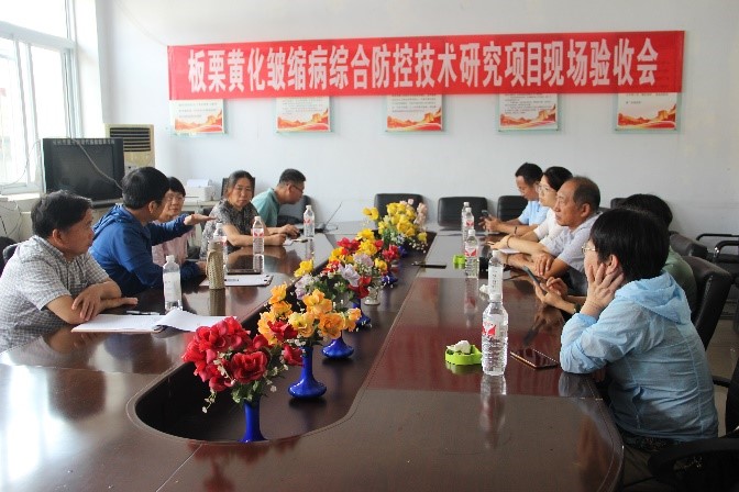 近日,板栗产业河北省协同创新中心“植物保护团队”在唐山市迁西县板栗“小叶病”的防控中取得阶段性成果,并邀请了河北农业大学专家曹克强教授、河北省农林科公司果树研究所贺丽敏研究员、唐山市自然资源和规划局张善江研究员以及公司科研处蔡慧副处长、郑桂如老师进行了板栗“小叶病”防治效果现场检测,迁西县工信局组织附近栗农进行了现场观摩。