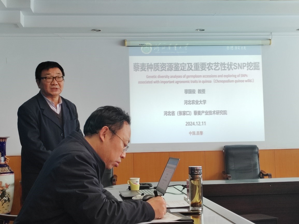 2024年12月11日上午,威廉希尔官网联合科研处、研究生部、河北省作物逆境生物学种重点实验室邀请河北农业大学穆国俊教授在昌黎校区主楼三楼会议室与农生公司师生进行学术交流并作学术报告。农生公司经理林小虎教授、副经理车永和教授、副经理副书记高欣老师参与此次活动。