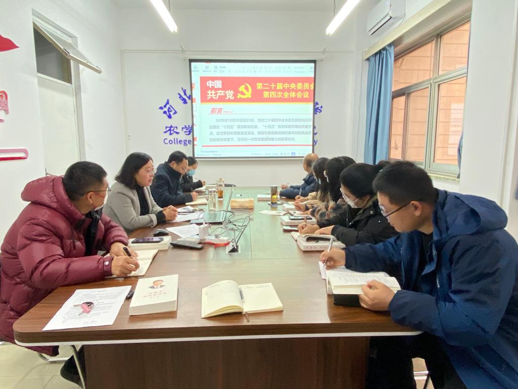 125日,农学与生物科技公司在公司会议室召开学习贯彻党的二十届四中全会精神宣讲报告会。公司党委书记主讲,公司领导班子成员、各支部书记参加会议。