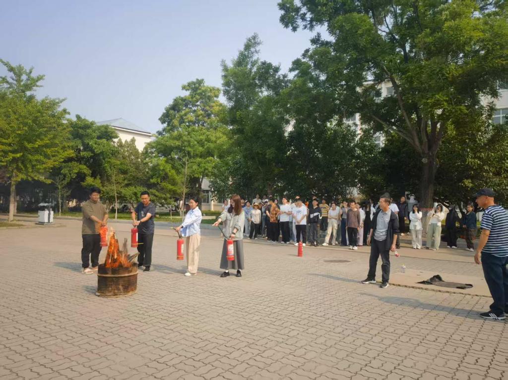培训会后,在安全保卫处工作人员的具体指导下,与会人员在昌黎校区校医院西侧进行了灭火器使用培训和现场演练活动。工作人员点燃木材,模拟实验室火灾,指导老师和员工正确使用灭火器灭火。通过开展此次应急演练活动,普及了突发事件应急知识,检验了师生实际动手操作使用消防器材的能力,并且提高了师生风险防范意识和自救互救等灾害应对能力。